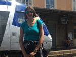 | Nora took an early train to the small town of Vernon so she could transfer to a bus headed for Giverny in order to be there when Monet's gardens opened at 9:30 and see the water lilies still in bloom. In addition she wandered throughout his flower gardens, watched his chickens, and toured his home. At noon she returned to Vernon by bus. |