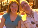 | When she returned to Paris in the evening Nora toured the Seine on the Bateau Mouche. Afterward she walked along the Right Bank escarpment and rescued a baby duckling that had been separated from its family, then crossed the Passerelle Leopold-Sedar-Senghor bridge accessed from the quay and admired the locks that lovers have attached to it. She ended the long day with a late Parisian dinner (11 o'clock) on Blvd St. Germain. |