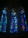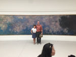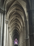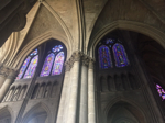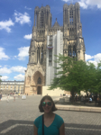 Nora visited the Orangerie to view the enormous paintings of Monet's water lilies that she saw blooming the day before, and then went to Gare de l'Est to take a train to Riems. While mom purchased tickets she shopped for lunch with dad in the train station. She ate lunch on the train and carried a baguette around all day. In Reims she toured the Cathedral and saw Marc Chagall's stained glass windows and learned about the French kings, but could not tour the tower because it is closed on Mondays. She walked around the ancient part of the city and viewed the fountains and shops, then returned to Paris for an early (8 o'clock) dinner because she had a long travel day in the offing.