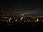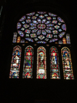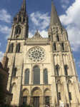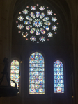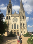 | In the afternoon Nora ook an SNCF train to Chartres and toured the Notre Dame Cathedral where she saw its famous rose windows, the supposed veil of Mary, and stayed for Mass. She took the train back to Paris and ate at a creperie near the Montparnasse station than went up the 59 story Tour Montparnasse to view Paris at night. The Eiffel Tower was lit in black, red and gold in support of the German people due to the day's terror attack. |