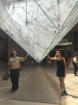 | Nora experienced much serendipity today. She began at a cafe on Boulevard St. Germaine for breakfast and then walked to the Louvre where she was able to bypass the 2-hour line and enter directly due to a "secret" underground entrance that dad read about. She saw the Mona Lisa, the Venus De Milo, Delacroix' Liberty Leading the Masses, and too many other DaVinci's, Titians, Vermeer's, etc. to count. As she left the museum she was blockaded by police just as the Tour de France cyclists came into Paris proper for the race's finish. She watched the peloton pass then walked toward the Opera and visited the second hotel from mom and dad's honeymoon just as the remaining cyclists passed that street en route to the Arc du Triomphe. She took Metro to the old location for the Bastille and then walked across the river where she toured the Pantheon and saw the tombs of France's great philosophers, writers and scientists. She saw those of Voltaire, Rousseau, Victor Hugo, Dumas, Marie Curie, Louis Braille and more all in subterranean vaults, as well as Foucault's pendulum swinging above ground. She walked along the Champs de Mars as six French fighter planes flew overhead trailing blue, white and red smoke to streak the sky with the colors of the flag for the end of the race's festivities. She then went to the Eiffel Tour where the line was very short (35 minutes) to reach the elevators and rode in stages to the top. As she walked down on the 600 bottom stairs the tower was illuminated entirely in yellow for the winner of the Tour du France. Once at the bottom Nora rode a carousel that she had ridden eleven years ago when she first visited the city and for ten minutes the tower was illuminated by hundreds of strobe lights before turning back to solid yellow.