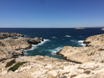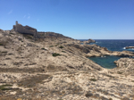 Nora walked to the Savonnerie Marseillaise de la Licorne atelier to see how they make soap from olive oil. In the late morning she visited the Abbaye of St. Victor and went through its small Holy Door, then down to the Vieux Port to take a very bumpy, splashy boat to the Frioul Archipelago. She walked along Pomegues and climbed to some of its old forts against very high winds. She then walked to Ratonneau and to St. Esteve Beach where she waded into the Mediterranean Sea. She eturned to the Vieux Port on calmer seas and was able to get a good view of the Chateau d'If and the harbor lights.